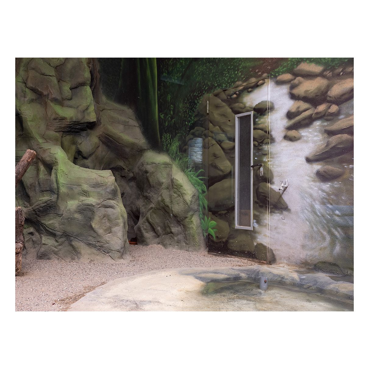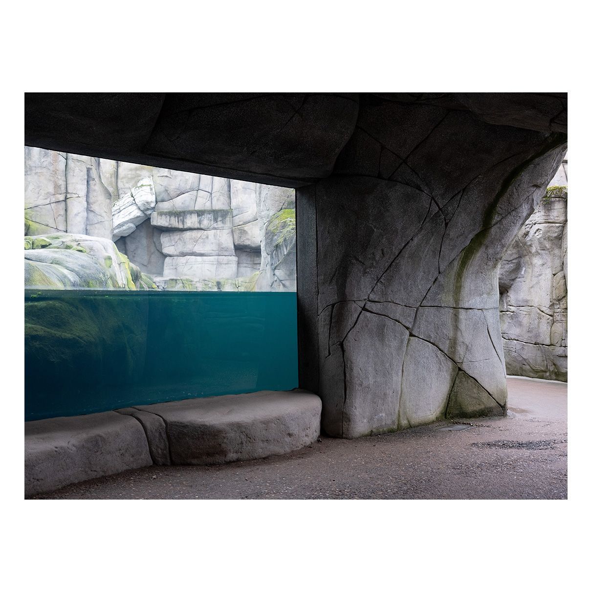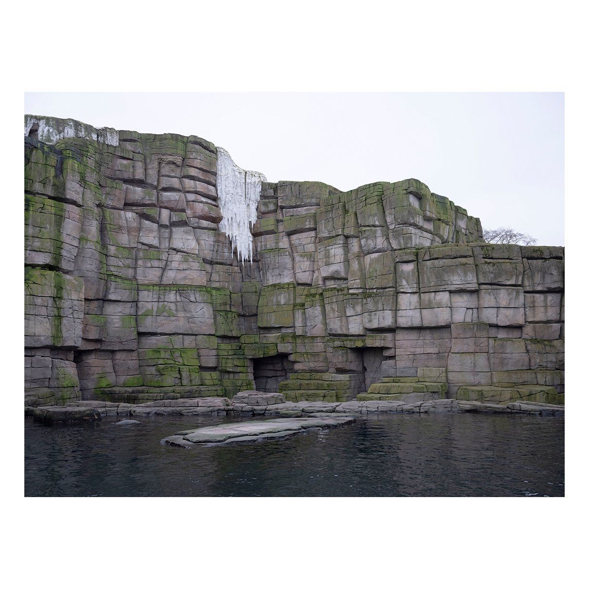 Jens Nommel’s photos are not an outraged accusation, but factual, calm and at first glance strangely empty. »I want to lower the pulse of the viewer«, he says. Only those who do not immediately recognize what can be seen in a photo begin to look consciously. Thus, one discovers that every simulation contains glitches, including the simulation of freedom in modern zoos. At second glance, one is almost amazed at how bunglingly these artificial landscapes are knocked together: Poorly camouflaged doors lie in rock walls. Tufts of grass proliferate from glaciers. And eyelets can be seen on a block of ice: Are they transport eyelets that have not been removed after assembly? Or is this where the window cleaners abseil into the polar sea?